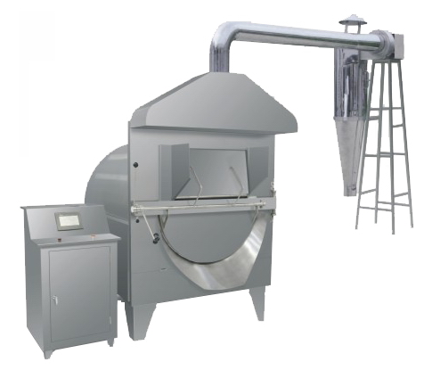 本機采用PLC+觸摸屏控制,數(shù)控化生產,可設定及存貯溫度、轉速、時間等工藝參數(shù)。采用特殊滾輪支撐裝置支撐炒藥滾筒,滾筒轉動平穩(wěn),電磁直接加熱滾筒,升溫迅速。滾筒外加保溫層,測溫探頭可直接測量滾筒溫度。本機具有加熱速度快.熱效率高之優(yōu)點,符合GMP要求。